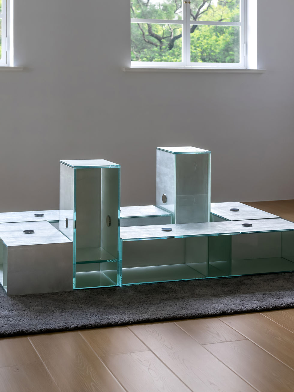 Breaking the existing order and reconstructing a new one generally brings about a sense of psychological security and predictability for individuals. The uncertainty variables within the order can trigger new changes and experiences. The modular design of the Orderly series embodies the concept of order. Among them, silver is chosen as one of the main materials, which makes the product produce unknown changes over time in a quiet order, while the addition of glass ensures that the product has basic stability in function.